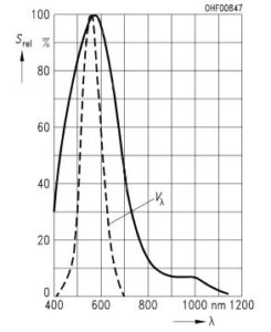 Sensibilité relative spectrale en fonction de la longueur d’onde :