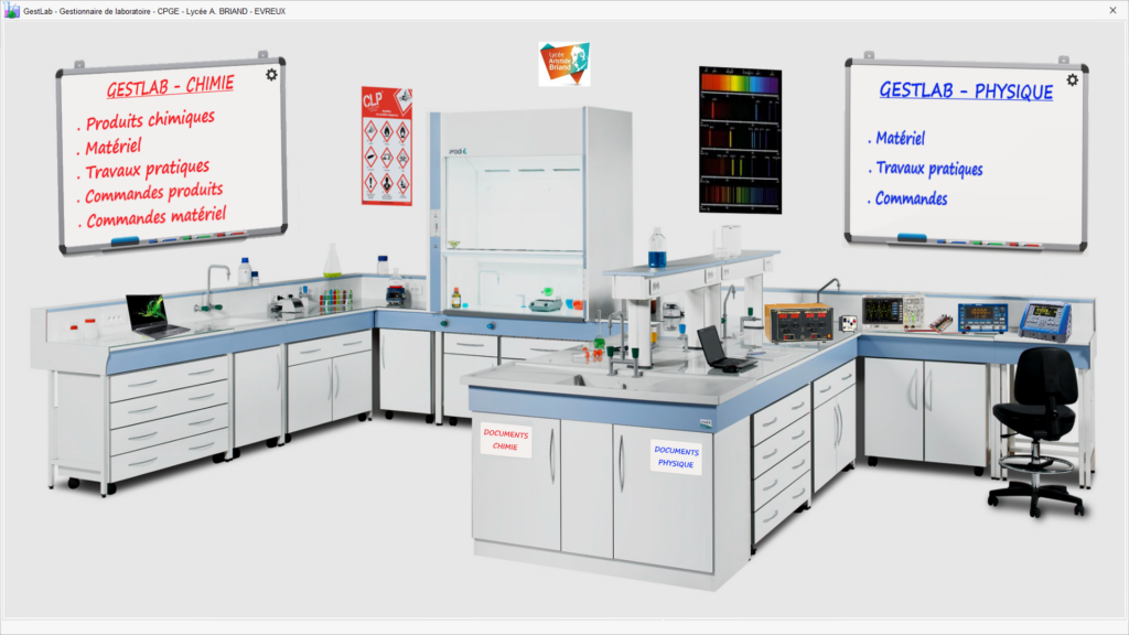 GESTLAB est un logiciel programmé en Python 3 afin de faciliter la gestion des laboratoires de sciences physiques, dans les lycées d’enseignement général et technologique.