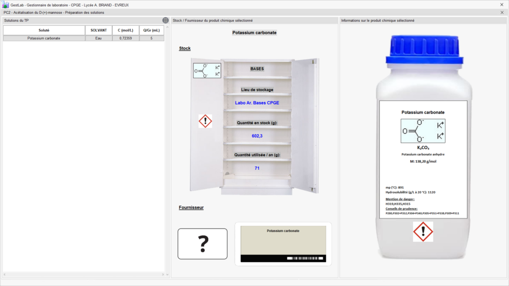 Gestion des fournisseurs de produits chimiques et matériel de chimie
