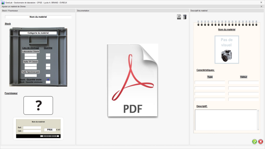 La fenêtre de gestion des commandes de matériel de chimie s’ouvre en cliquant sur le bouton .
