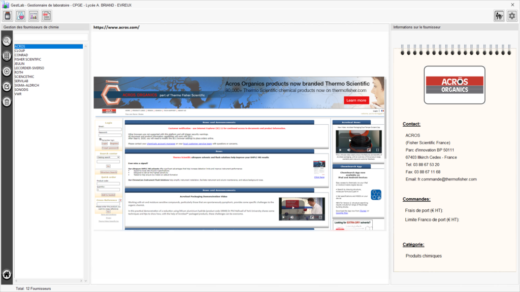 Gestion des fournisseurs de produits chimiques et de matériels de chimie