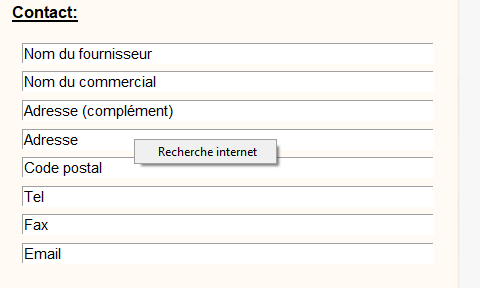 Toutes les informations de contact peuvent également être recherchées à l’aide d’un clic droit sur les zones d’entrées :