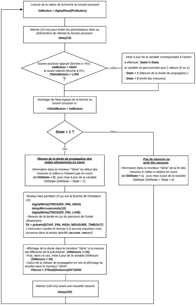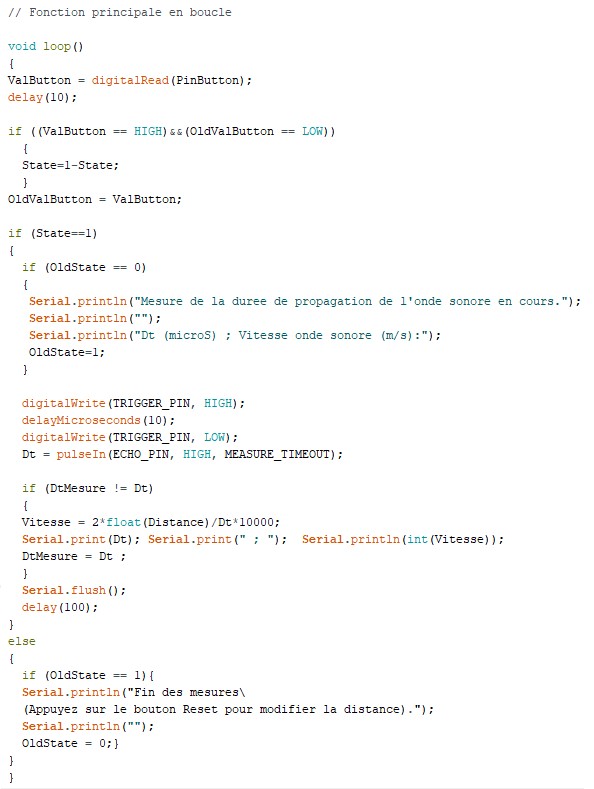 Les mesures de vitesse du son dans l’air commencent après un appui sur le bouton poussoir et sont arrêtées en appuyant de nouveau sur celui-ci.