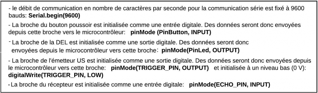 – Initialisation des entrées et sorties :