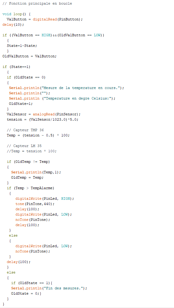 Il suffit pour cela de reprendre le programme de l’activité précédente, auquel nous allons ajouter le code de l’alarme sonore et visuelle déjà vu.