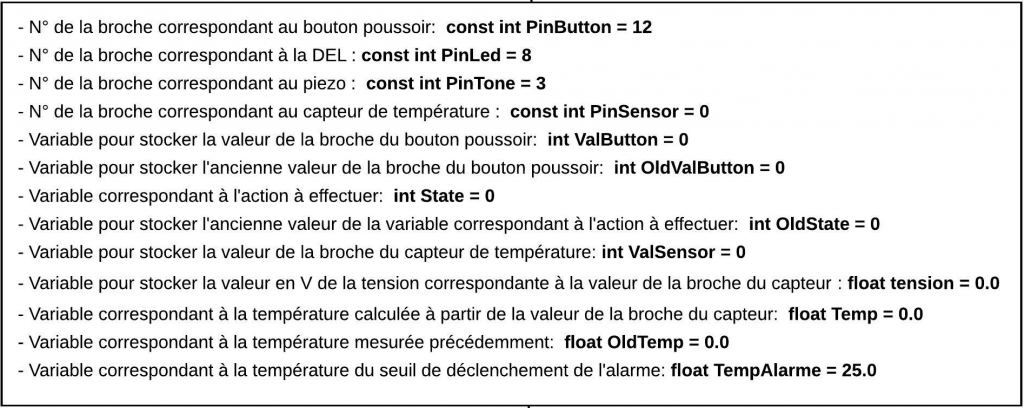 Le code de l’activité pourra être modifié pour voir l’influence des variables (seuil de température, fréquence de l’onde sonore, durée d’émission, durée de silence).